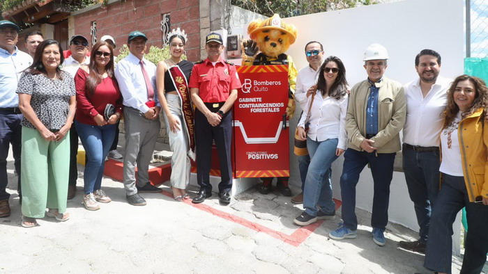 El Cuerpo de Bomberos del Distrito Metropolitano de Quito (CBDMQ), en alianza con Constructores Positivos, realizó este viernes 12 de septiembre la entrega de un sexto Gabinete Contraincendios Forestales a la comunidad de Zámbiza, una de las zonas con mayor vulnerabilidad frente a incendios forestales, especialmente durante la temporada seca.