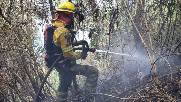 En la atención de esta emergencia trabajamos con 130 efectivos, nuestro helicóptero institucional, la unidad de investigación de incendios y 37 vehículos entre comando, logística, ataque y abastecimiento.